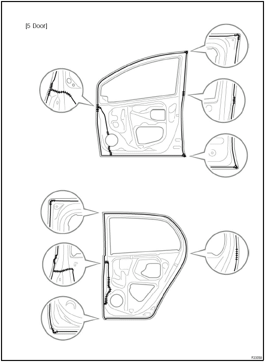 Toyota Yaris: Body panel sealing areas