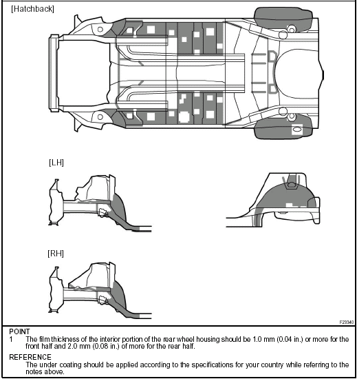 5) Apply under coating to all weld points under the body to ensure corrosion prevention at every location except the areas below.