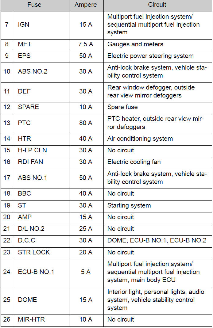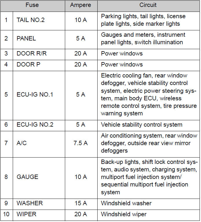 ●Always use a genuine Toyota fuse or equivalent.