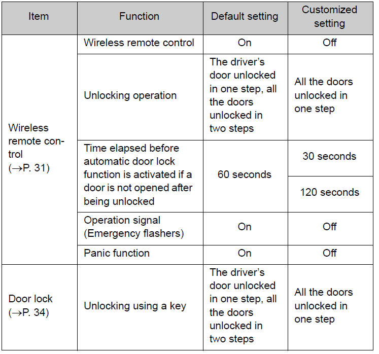 Some function settings are changed simultaneously with other functions being customized. Contact your Toyota dealer for further details.