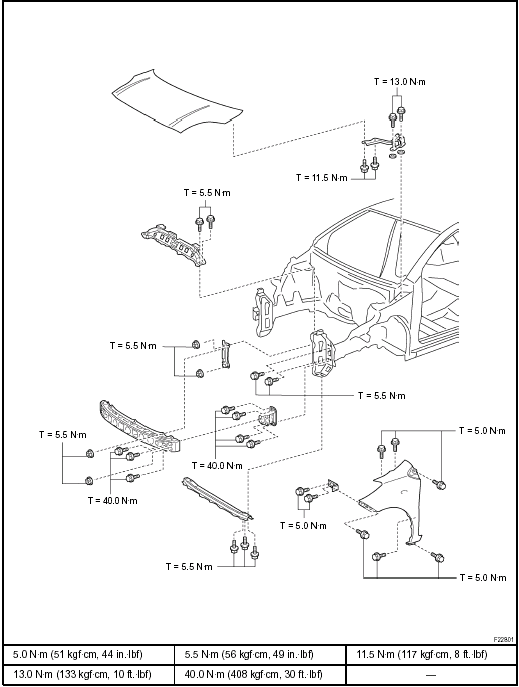 Second generation (XP90; 2005–2010) / Toyota Yaris XP90 2005–2010 Collision Repair Manual / BODY PANEL REPLACEMENT / Outer panel installation torque