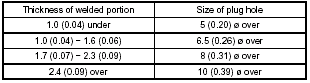 (1) When welding panels with a combined thickness of over 3 mm (0.12 in.), use a MIG (Metal Inert Gas) welder for plug welding.